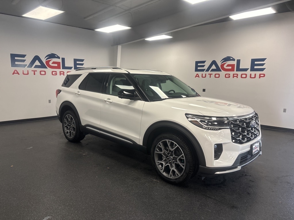 Star White Metallic Tri-Coat 2025 Ford Explorer Platinum 4WD 10-Speed Automatic 3.0L EcoBoost V6 4WD. Price includes: $1500 - Bonus Customer Cash. Exp. 01/05/2026