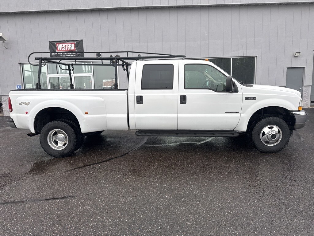Clean CARFAX. White 2003 Ford F-350SD XLT DRW 4WD 4-Speed Automatic Power Stroke 7.3L V8 DI 16V OHV Turbodiesel 4X4, Power Windows & Locks, Cruise Control, Power Stroke 7.3L V8 DI 16V OHV Turbodiesel, 4WD, 4-Wheel ABS Brakes, ABS brakes, GVWR: 11,200 lb Payload Package (#1), Trailer Tow Package.