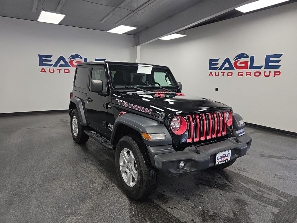 Clean CARFAX. Black Clearcoat 2019 Jeep Wrangler Sport S 4WD 8-Speed Automatic 3.6L V6 24V VVT Air Conditioning, Anti-Spin Differential Rear Axle, Automatic Headlamps, Black 3-Piece Hard Top, Brake assist, Bridgestone Brand Tires, Cold Weather Group, Convenience Group, Deep Tint Sunscreen Windows, Delay-off headlights, Dual front impact airbags, Dual front side impact airbags, Electronic Stability Control, Freedom Panel Storage Bag, Front 1-Touch Down Power Windows, Front anti-roll bar, Front fog lights, Heated Front Seats, Heated Steering Wheel, Integrated roll-over protection, Leather Wrapped Steering Wheel, Low tire pressure warning, No Soft Top, Normal Duty Suspension, Occupant sensing airbag, Power Heated Mirrors, Quick Order Package 24S Sport S, Radio data system, Radio: Uconnect 3 w/5" Display, Rear anti-roll bar, Rear Window Defroster, Rear Window Wiper/Washer, Remote Keyless Entry, Security Alarm, Speed Sensitive Power Locks, Sun Visors w/Illuminated Vanity Mirrors, Traction control, Universal Garage Door Opener, Wheels: 17" x 7.5" Black Steel Styled, Wheels: 17" x 7.5" Tech Silver Aluminum.
